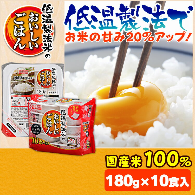 パックご飯 低温製法米のおいしいごはん 180g×10パックパックごはん 米 ご飯 パック レトルト レンチン 備蓄 非常食 保存食 常温で長期保存 アウトドア 食料 防災 国産米 アイリスオーヤマ