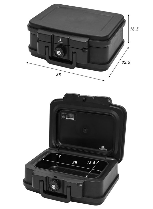[こんな商品をお探しの方に] 金庫 家庭用 おしゃれ セキュリティボックス セキュリティーボックス 耐火 耐水 防水 手提げ 携行 k携帯 ポータブル 移動式 業務用 盗難防止 防犯金庫 A5ファイル 書類 保管 鍵付き 貴重品入れ 窃盗 防盗 空き巣被害 オフィス 対策 セキュリティ 安全 保管庫 小型 コンパクト ホテル 旅館 鍵式 ピッキング対策 チューブラーキー カギ アメリカ UL規格 UL米国安全規格 合格製品 ブラック 黒 サイズ: 外寸:(約)幅38cm×奥行32.5cm×高さ16.5cm 内寸:(約)幅29cm×奥行18.5cm×高さ7cm 重量: (約)9.5kg 容量: (約)5L 材質: ポリプロピレン、亜鉛合金、耐火材、スチール、ABS樹脂 付属品: 鍵×2個、日本語取扱説明書 特記事項: 【耐火性能】 本製品はアメリカのUL規格(一般紙用耐火試験)に合格した製品です。