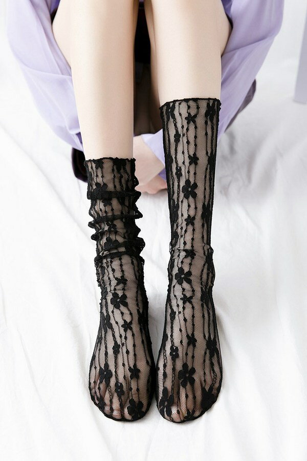 レース 靴下 黒 レディース ソックス シースルーソックス 花柄 総レース 春 夏ソックス 靴下 くつした くつ下 おしゃれ 夏用 黒 白 ホワイト ブラック 総レース ww003s1