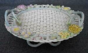【送料無料】キッチン用品・食器・調理器具・陶器 レアシングルパッドストランド小枝ハンドル花積みラージラウンドバスケットRARE SINGLE PAD BELLEEK 4 STRAND TWIG 2 HANDLED FLORAL LADEN LARGE ROUND BASKET