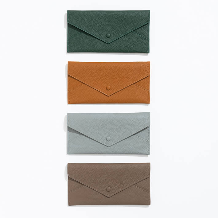 リアルレザーペーパーロングウォレット【送料無料 財布 ミニ財布 長財布 マルチケース ポーチ カードケース 旅行 ダークグリーン キャメル ライトブルー グレージュ】★ギフト