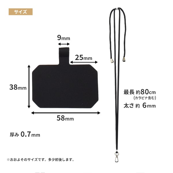 製品仕様カラー ブラック/ネイビー/ダークグレー/グレーブルー/ワインレッド/レッド/ホワイト/イエロー素材 ナイロンサイズ(約) シート:縦38×横58×厚み0.7mmストラップ紐:最長80cm(カラビナ含む) 太さ:6mm重さ(約) 30g対応サイズ ケースの充電口部分が9mm以上開いているスマートフォンケース注意 ※海外からの輸入商品となります。