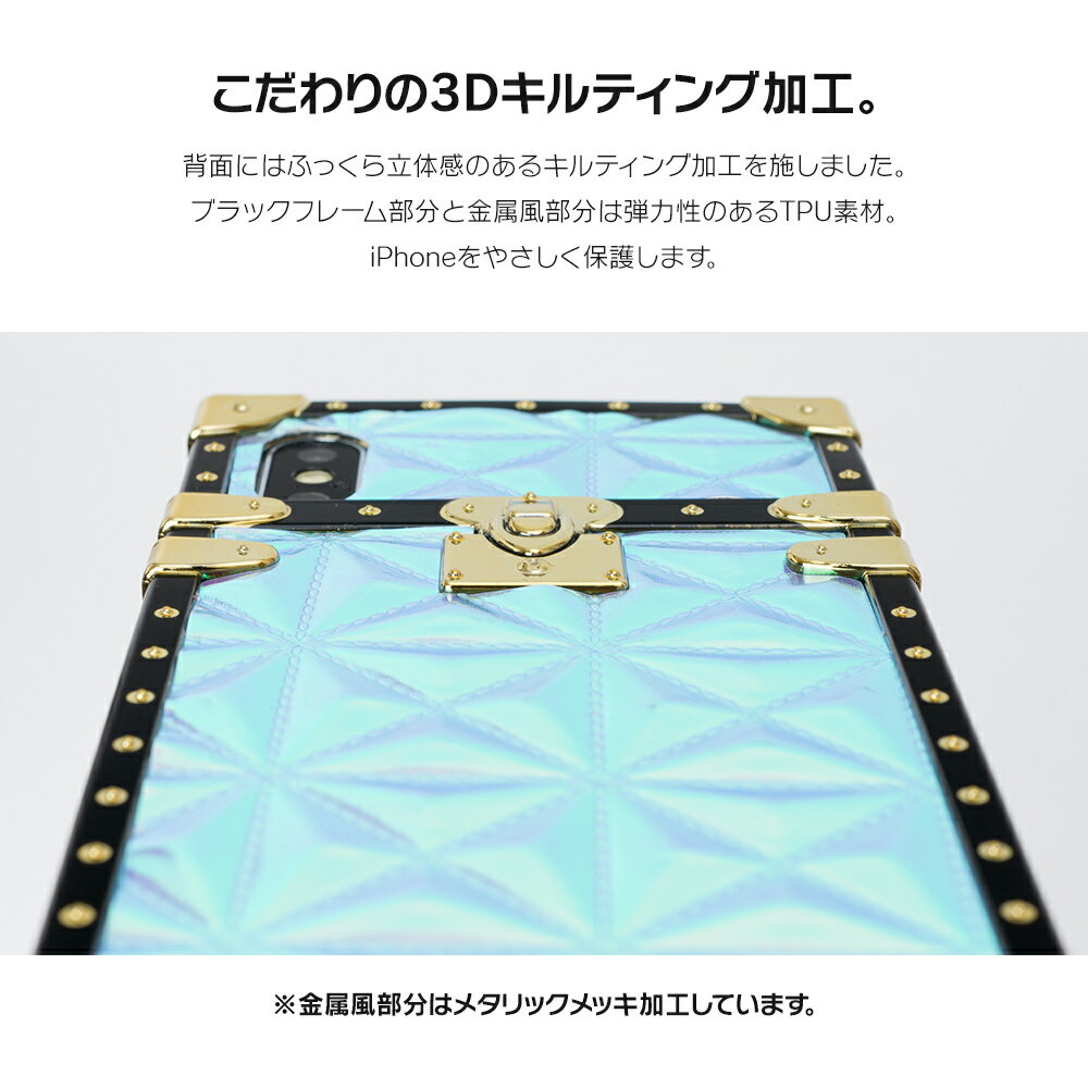 \ 500円 均一 / iPhone XR ケース iPhoneケース アイフォン iPhoneXR iPhoneXS iPhoneX iPhone ケース カバー かわいい キラキラ 耐衝撃 トランク オーロラ キルティング スクエア 偏光 dm 500円 「オーロラトランク」
