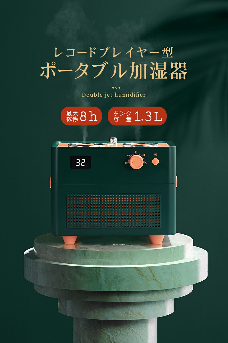 ポータブル 加湿器 卓上 レトロ かわいい レコードプレイヤー型 オフィス 小型 USB 充電式 静音 静か コンパクト ミニ オシャレ 誕生日プレゼント 自然 気化式 ミスト スチーム 乾燥防止 除菌 花粉症 対策 オールドスタイル [ レコード型加湿器 ダブル ]【あす楽】