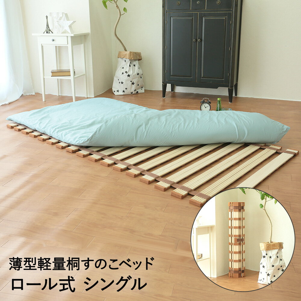 桐 すのこ ベッド ロール式 シングル 完成品 LY-100 オスマック | すのこベッド スノコベッド すのこマット 天然木 木製 スノコ 折りたたみ コンパクト ベッドフレーム 折りたたみベッド 薄型 軽量 通気性 湿気 下 シングルベッド フレーム 新生活 すのこベット 組み立て不要