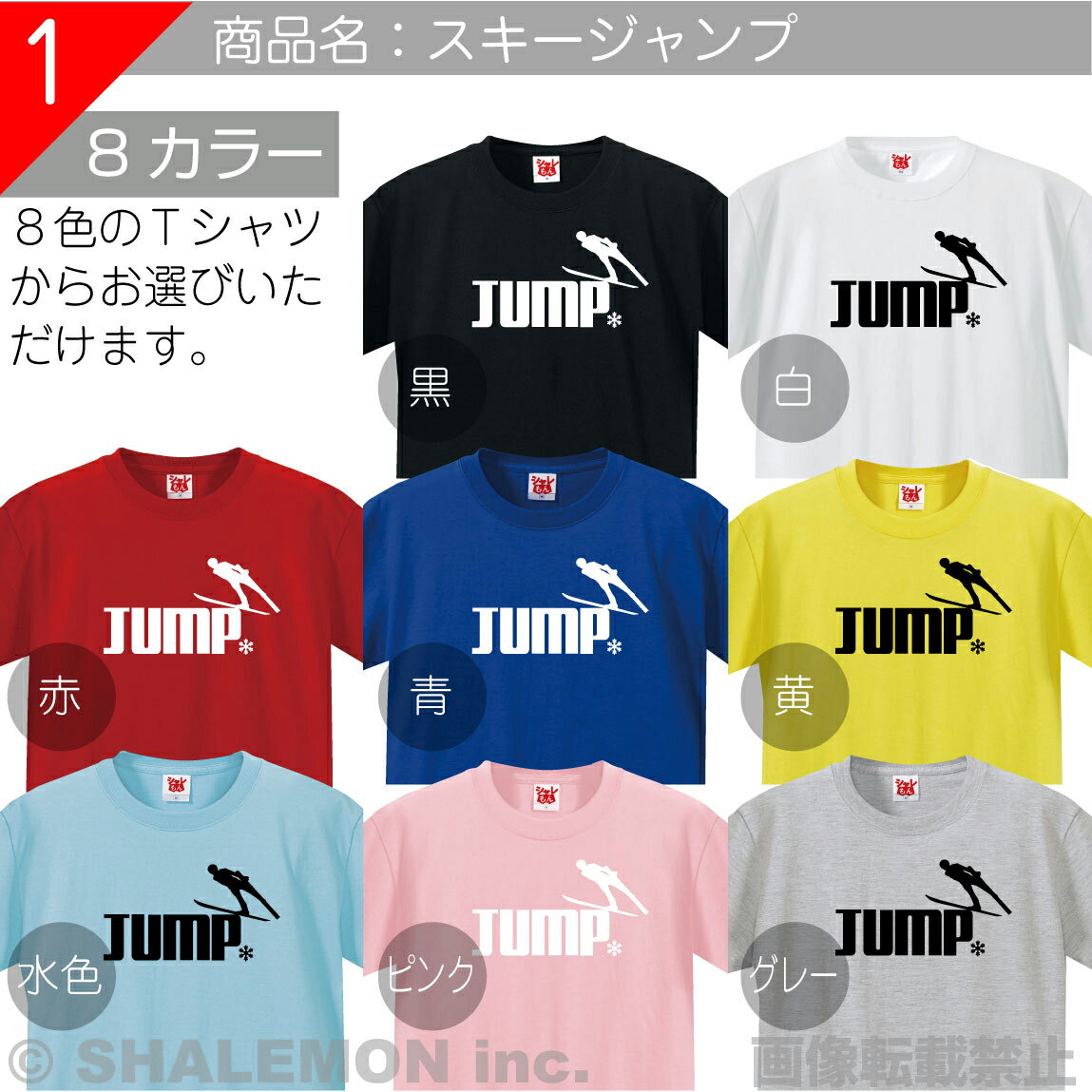 スポーツ おもしろtシャツ 【 選べる8色×2デザイン Tシャツ スキー ジャンプ 】 冬季 観戦 応援 グッズ メンズ レディース キッズ スキー ウエア ジュニア 雪 板 グローブ アルペン クロスカントリー テレマーク ノルディック ストック ブーツ ゴーグル 人気 シャレもん
